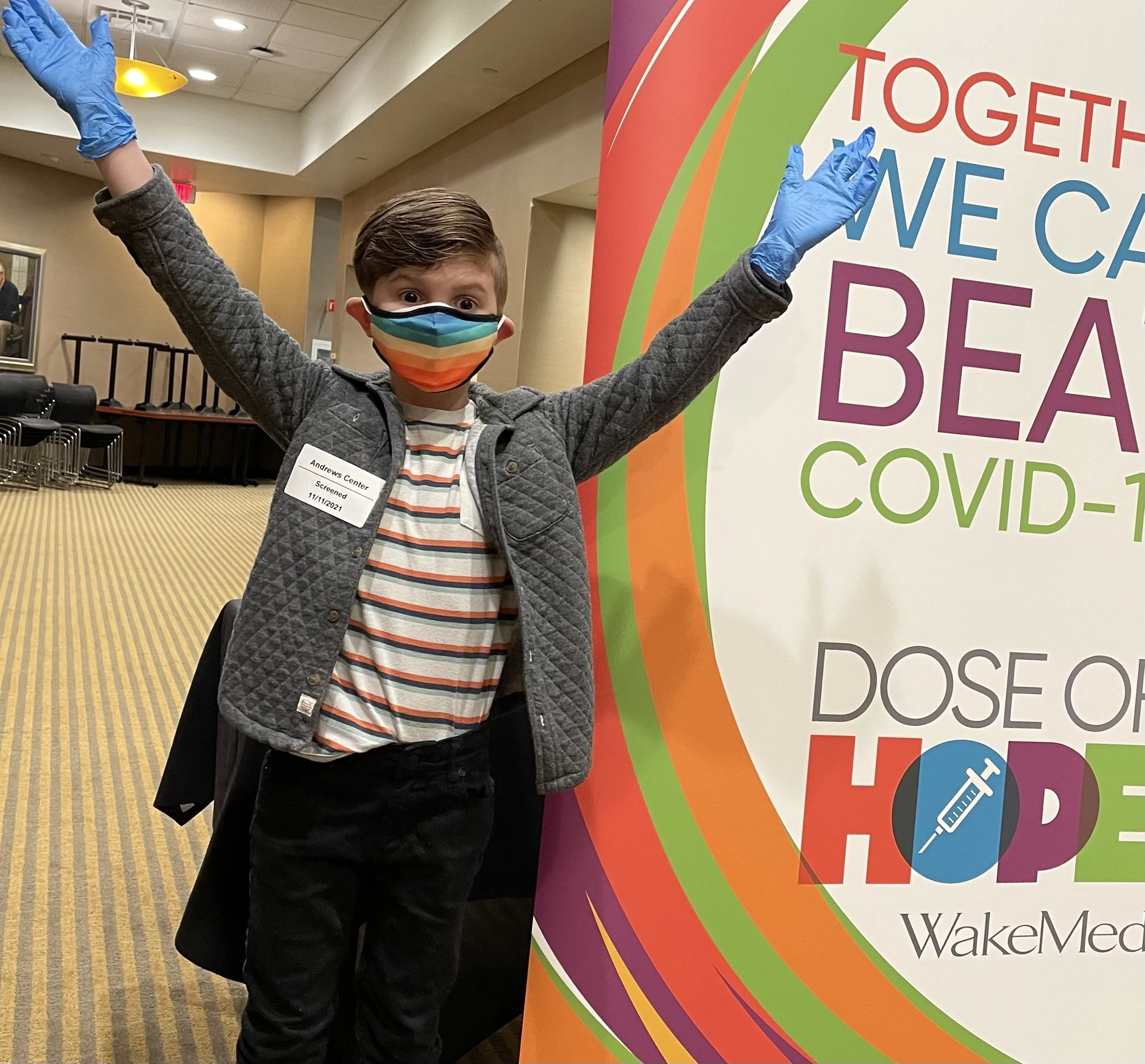 Knowing that he would need some time to process and prepare himself about the vaccine, we dedicated all day Wednesday to feeling prepared. This supports his anxiety as he arms himself with knowledge. We learned details about the history of vaccines, the technology behind the mRNA vaccines like Pfizer, and then practiced wearing a mask until we found one that would stay on for the 18 minutes required to get the vaccine, and finally as anxiety mounted close to bedtime he used syringes to understand how small the dose would be. By vaccine day, he was prepared and excited. He walked in confidently, was surprised when the shot was behind him, and waved at all of the nurses on his way out cheering!!